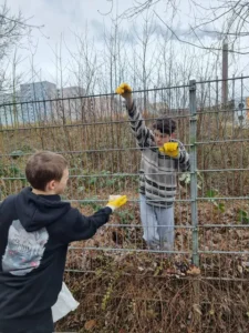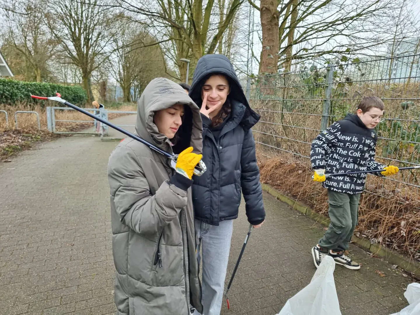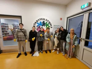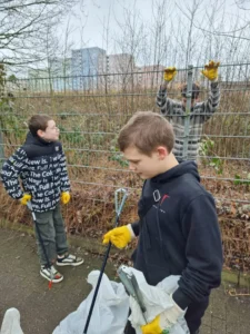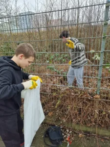 Wir haben Handschuhe, Zangen und Mülltüten benutzt. Zum Schluss haben wir leckeres Essen bei Aldi gekauft.