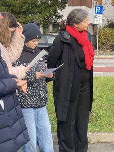 Schüler* innen des 8. Jahrgangs haben mit der Lesung einer Biografie den feierlichen Akt begleitet.