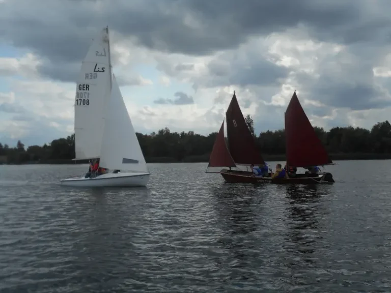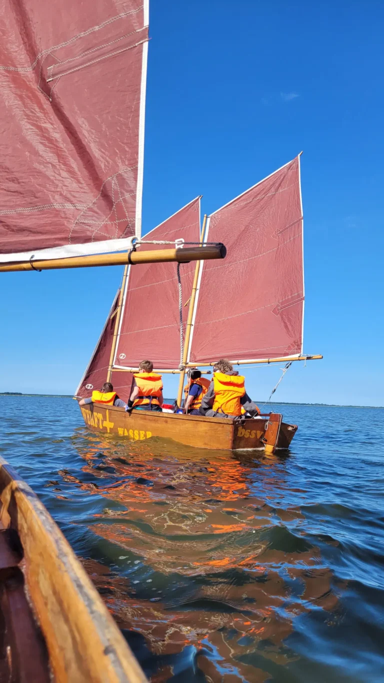 Die jungen Schüler* innen aus den Jahrgängen 5-7 segeln in „Robinson“-Jollen, schönen Jugend-Segelkuttern aus Holz, von denen wir 3 Boote haben. Sie sind super Anfänger-Boote, segeln klasse und können kaum kentern. Ältere Schüler* innen ab Jahrgang 8 segeln in den sportlicheren „Lis“- und „Gruben“-Jollen. Sie, als die erfahrenen Großen, dienen den jüngeren Schüler* innen als Vorbild, ziehen sie mit und bringen ihnen die Kniffe der Segelei bei.