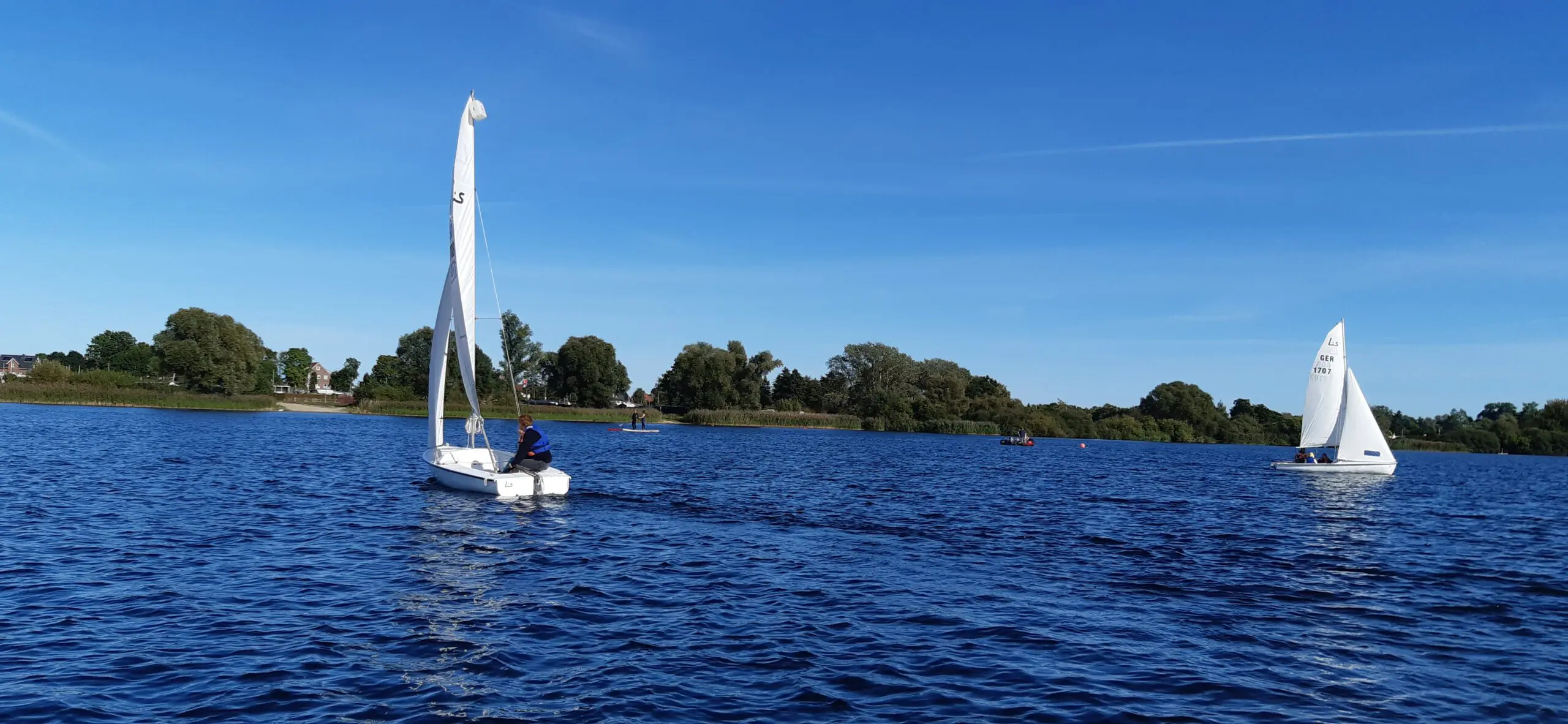 In der Segel-AG trainieren wir die grundlegenden Segel-Manöver, machen Kenter-Übungen und kleine Wettfahrten. Die meiste Zeit segeln die Schüler* innen aber einfach so, wie sie es wollen.