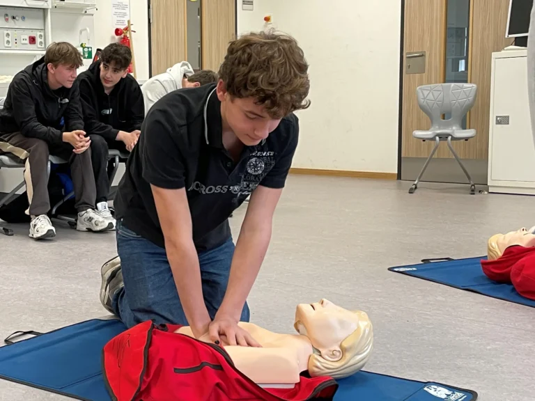 Bei unseren schulischen Veranstaltungen, wie unseren Kulturtagen und Sportveranstaltungen, kümmert sich unser Schulsanitätsdienst um das Wohlergehen unserer Schüler* innen, Kolleg* innen und Gäste. Das Team des Schulsanitätsdienstes setzt sich aus einer Science!-Profilklasse in der Mittelstufe und Oberstufenschüler* innen zusammen.