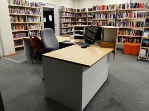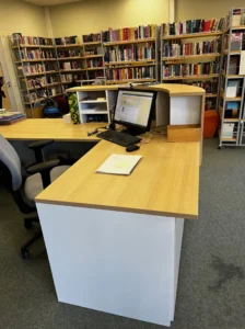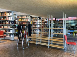 Wir haben an der GSB seit diesem Schuljahr unsere neu modernisierte Bibliothek. Die Planung begann 2022 und 2023 wurde mit dem Umbau angefangen.