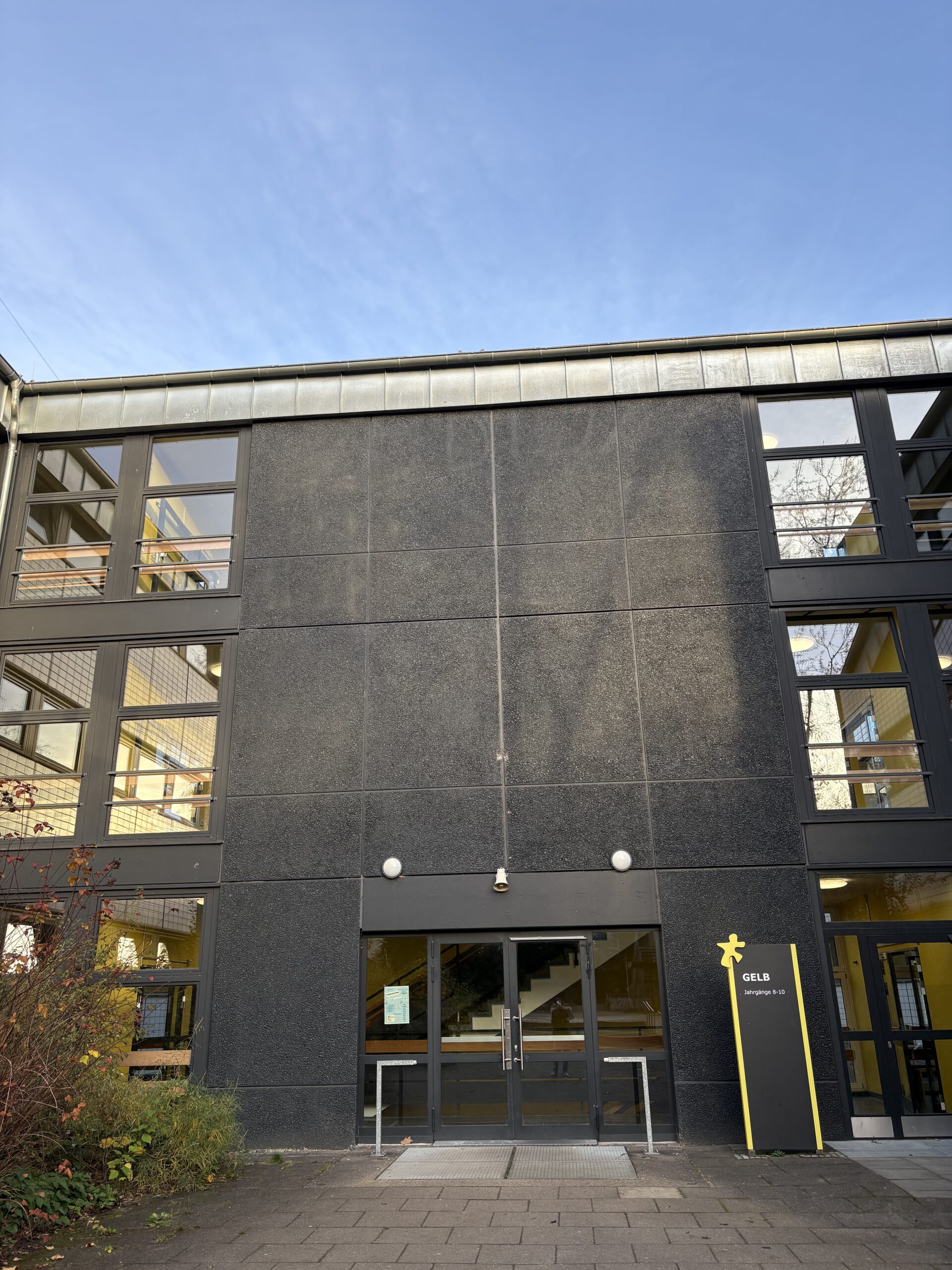 Wir haben ein gelbes Haus. Dort sind die drei Jahrgänge 8, 9 und 10 mit den Profilklassen. Es gibt das HDK (Haus der Kulturen), das ist auch ein Gebäude mit vielen Klassen, Musik- und Kunsträumen und das Atrium. Im Atrium finden Theaterkurse statt. Im HDK ist der Schulzoo, da gibt es viele Tiere. Da kann man Pfleger werden, um die Tiere zu pflegen. Es gibt ein rotes Haus mit Klassenräumen, dem PÄZ (Pädagogische Zentrum), der Bühne 13 für Theateraufführungen und dem Beratungsdienst. In dem orangen Haus gibt es eine neue Küche, die Waldlounge, Fachräume und Werkstätten. Es gibt ein grünes Haus, das Oberstufenhaus, da befinden sich die Klassen 11 bis 13. Außerdem gibt es in der Schule ein großes Verwaltungsgebäude mit dem Schulbüro. Dort gibt es unten das Schulrestaurant, einen Kiosk, eine Bibliothek und das Hausmeisterbüro.